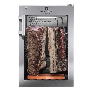 Шкаф DRY AGER DX0500PS предназначен для сухого вызревания говядины, а также производства мясных закусок и колбасных изделий на предприятиях пищевой промышленности, общественного питания и торговли. Модель оснащена электронным контроллером температуры и влажности, откидным дном, интегрированными рейками и регулируемыми по высоте ножками. Дверная рама выполнена из нержавеющей стали, корпус - из стали, окрашенной порошковой краской, дверца - из стекла с УФ-фильтром..Особенности:DX AIRREG: оптимальный воздушный поток, позволяющий сохранять нужный микроклимат внутри, фильтр из активированного угля и система стерилизации воздуха внутри шкафаАвтоматическое размораживаниеПредустановленные программы для вызревания мясаНезначительные потери в весе: от 7 до 8% после 4 недель вызреванияПеренавешиваемая дверьВстроенная в боковые стенки светодиодная подсветка DX LED PremiumДополнительные характеристики:Максимальная загрузка:2 туши длиной до 0,5 м20 кг на полкахОбъем:Общий: 147 лПолезный: 132 лОтделка корпуса: сатинированная черная