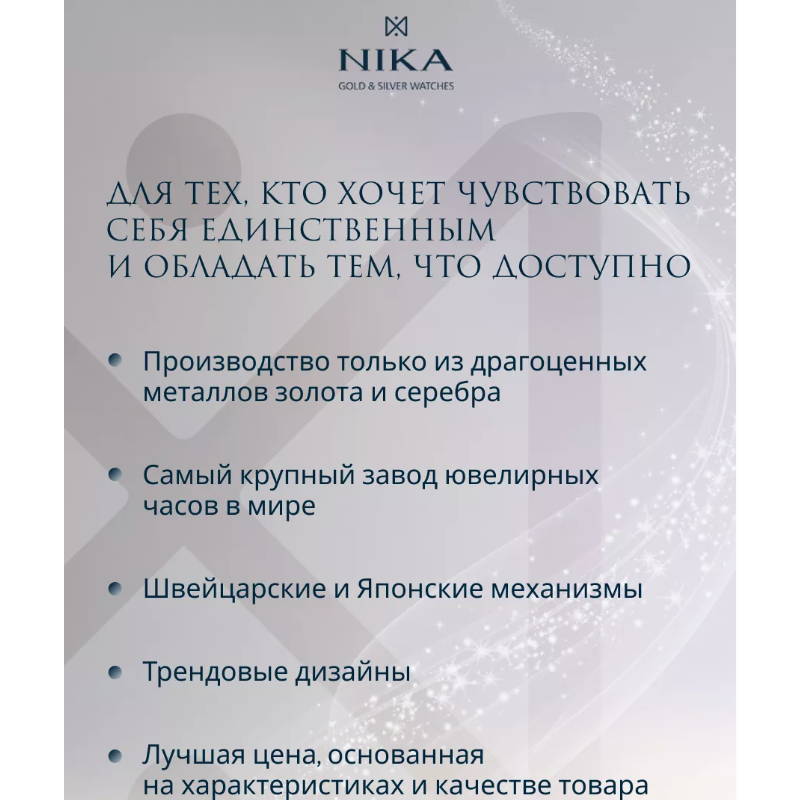 | Комплектация | часы; футляр; Гарантийная карта; пакет; салфетка из микрофибры |
