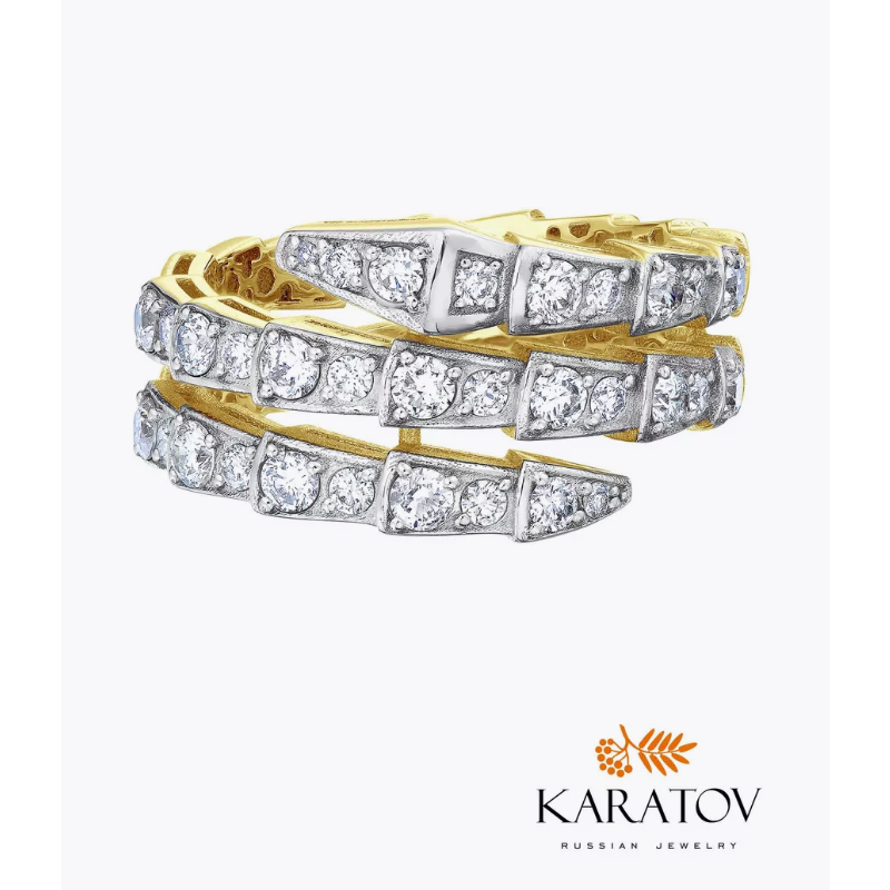 Кольцо женское выполнено из желтого золота 585 пробы с бриллиантами. Колечко с уникальным дизайном можно носить в любом возрасте, оно станет отличным украшением для женщины, девушки, а также для подростков. Золотое кольцо прекрасно сочетается с повседневными, вечерними и праздничными образами. Можно использовать на большой палец и на мизинец. Украшения бренда KARATOV - это не бижутерия. Для производства используются натуральные драгоценные металлы. Такие изделия обладают особой прочностью и долговечностью. Золото не тускнеет со временем, сохраняя ослепительное сияние и не подвержено деформации. Материал не слишком прихотлив в уходе и, если соблюдать простые правила, украшение надолго сохранит первоначальный внешний вид. Кольцо необходимо протирать раствором с добавлением мыла и очищать щеткой с мягкой щетиной. Ювелирные изделия устойчивы к царапинам, не изменят свой цвет со временем, гипоаллергенны и подойдут для людей с чувствительной кожей. Чтобы покупка радовала вас, как можно дольше, рекомендуем избегать контакта с агрессивными химическими и парфюмированными средствами. Гарантийный срок составляет 6 (шесть) календарных месяцев и исчисляется со дня получения заказа. Коллекции KARATOV - словно собрание удивительных историй, в которых каждый найдёт что-то своё. Мы воплощаем счастливые моменты вашей жизни в уникальных украшениях – это готовый подарок в брендированной упаковке для любимой, мамы, бабушки, невесты, жены и подруги. Поводом может быть любой праздник: свадьба, 8 марта, юбилей, новый год, день рождения и другие. Заявленное качество подтверждается в Федеральной пробирной палате клеймом, которое свидетельствует о подлинности и пробе изделия. Значения веса на фото и в характеристиках являются примерными и могут отличаться от фактических, которые будут указаны на бирке в комплекте с вашей покупкой.