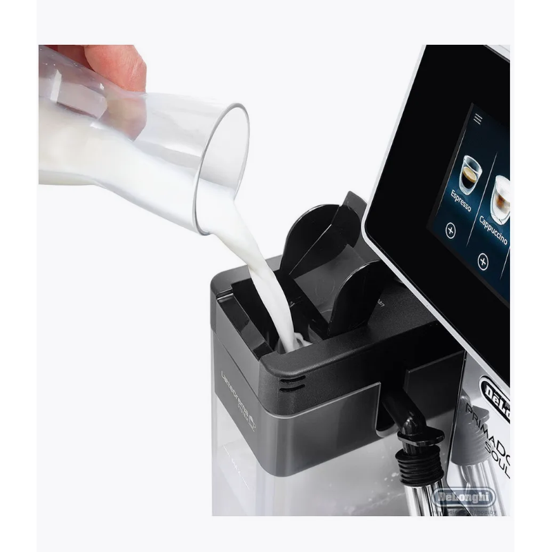 Готовить десятки кофейных напитков на любой вкус совсем не сложно, если вы уже купили кофемашину DeLonghi ECAM 610.55 SB PrimaDonna Soul. Один из самых современных комплексов для домашнего использования, по возможностям приближающийся к профессиональным устройствам к вашим услугам. Высокая мощность (1450 Ватт) гарантирует практически мгновенную подготовку к работе после включения, а «умная» электронная начинка полностью берет под контроль процесс приготовления. Все популярные композиции на основе эспрессо содержатся в памяти устройства, их можно заказать, просто нажав клавишу на сенсорной панели. Стандартное меню можно всегда расширить, подготовив собственный рецепт. Цветной TFT-дисплей отображает всю необходимую служебную информацию. Кофемашина в смартфонеТеперь возможно даже это! Сам смартфон кофе готовить все еще не сможет, зато вы с легкостью настроите кофемашину удаленно. Для этого используйте специальное фирменное приложение для устройств на базе Android Coffee Link. Связь с кофемашиной через интерфейс Bluetooth. Приготовьте свой кофе, даже не вставая с дивана. Система LatteCremaКофе, приготовленный правильно, должен иметь характерную коричневую пенку. Об этом и позаботится Система LatteCrema – ваш эспрессо будет просто идеальным. Все параметры напитка в точности соблюдаются: температура воды, количество кофе на порцию, давление. Помпа кофемашины способна нагнетать давление до 19 Бар, чтобы напиток готовился как можно быстрее, но не утрачивал при этом вкус и аромат. Стандартные возможностиКак и положено кофемашине, DeLonghi ECAM 610.55 SB PrimaDonna Soul объединяет в себе несколько устройств. Она не только варит кофе, но еще и предварительно перемалывает зерна в собственной встроенной кофемолке. Контейнер для кофейных зерен вмещает до 500 гр. Максимальный запас воды в резервуаре – 2,2 л., так что наслаждаться напитками можно в большой компании друзей. КапучинаторПредставляет собой съемный простой пластиковый кувшин для молока. Но вот его возможности приятноОписание