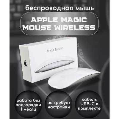 Беспроводная мышь Magic Mouse работает от встроенного аккумулятора и легко скользит по рабочей поверхности благодаря цельному основанию. Ее поверхность Multi-Touch поддерживает простые жесты, например, позволяя переходить между веб-страницами и прокручивать документы с помощью смахивания. Мышь Magic Mouse способна работать без подзарядки аккумулятора примерно в течение месяца - и даже дольше. Она не требует настройки и автоматически подключается к вашему Mac. В комплект входит кабель USB-C/Lightning в оплетке - с его помощью мышь можно подключать к Mac для зарядки от порта USB-C.