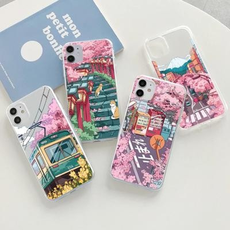 Японский эстетический прозрачный чехол Traint Moun Fuji для iPhone 14 13 12 11 Pro Max 8 7 Redmi 12C