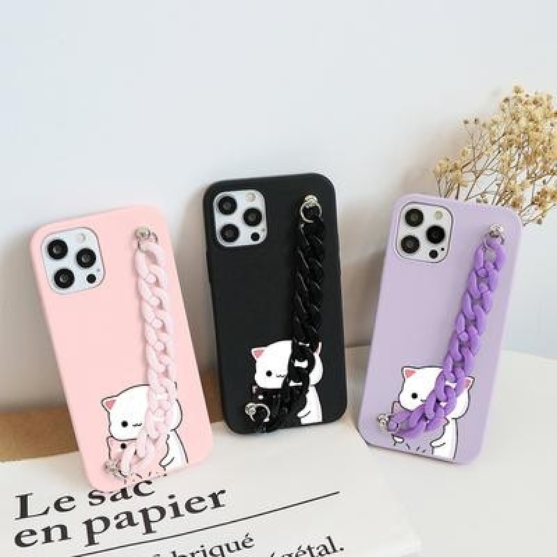 Симпатичные чехлы для телефона Cat с цепочкой для iPhone 12 11 Pro 8 7 6 Plus 5 SE 2020 X XR XS Max