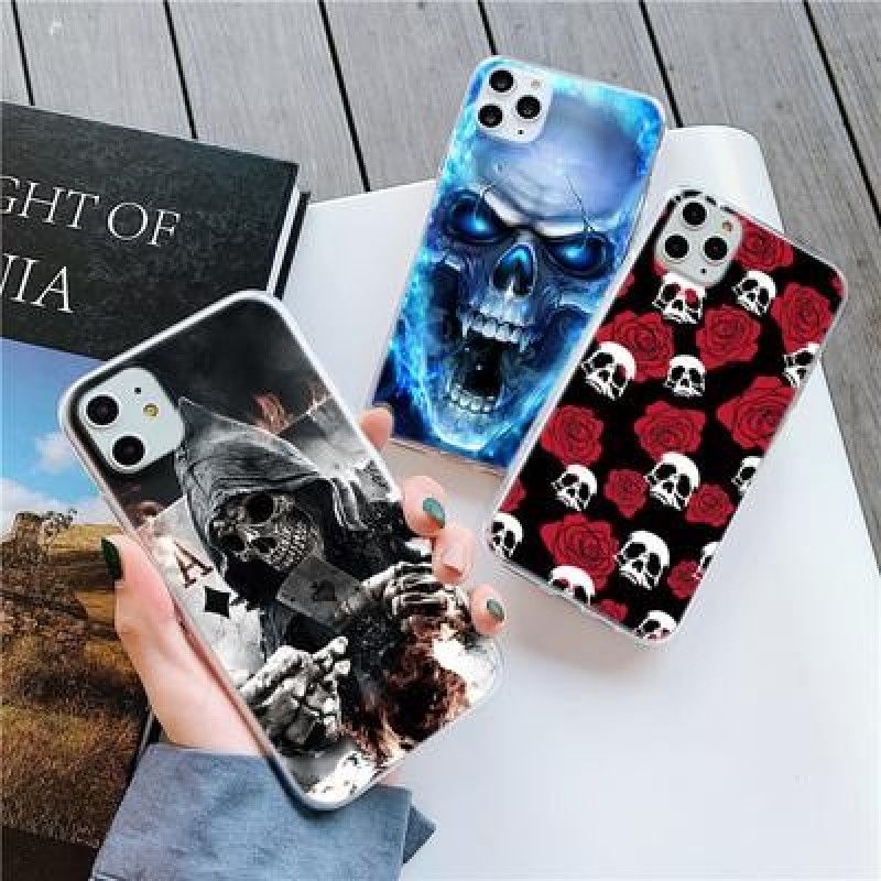 Череп Мягкий чехол для iPhone 12 11 Pro Max XR 7 8 Samsung A52 A32 A50 A51 S21 S20 A12 A72 Huawei Xi